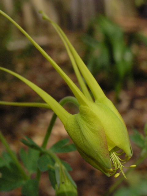 Looking like some brightly-colored horror picture monster, the Texas Gold Columbine (Aquilegia chrysantha var. hinckleyana) has several flowers that have not quite opened.