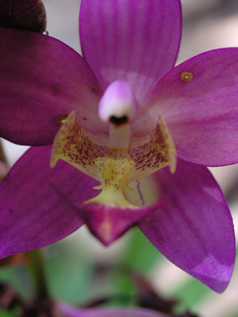 Only a single bloom remains on the Ground Orchid (Spathoglottis plicata). Its small cluster of purple flowers has been fading, but at least this one is still hanging in there.
